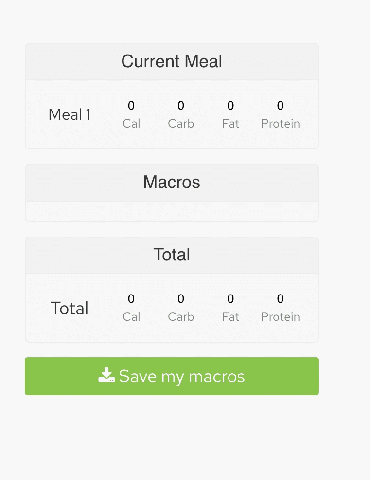 Meal card showing macros