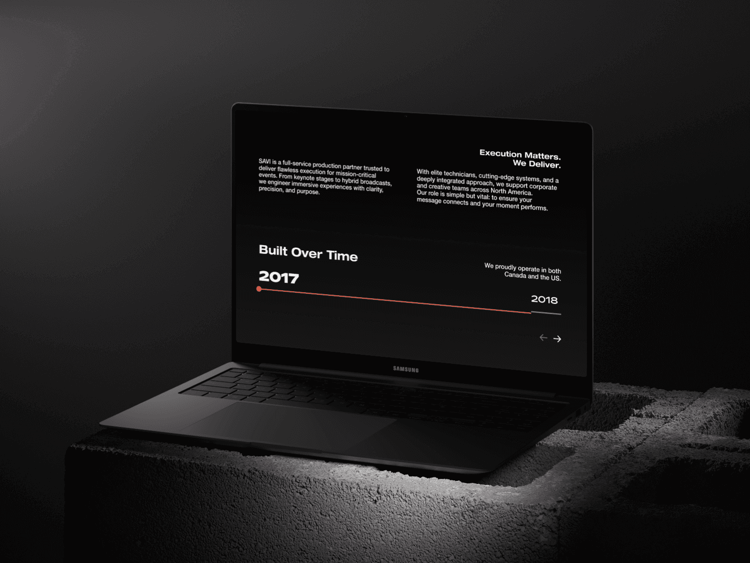 Savi is a Canadian audiovisual company. This project focused on designing a clean, modern digital presence that clearly communicates the brand’s value while creating a smooth and intuitive user experience. The main objective was to organize information in a way that feels accessible and engaging, allowing users to quickly understand the offering while navigating the site effortlessly. To achieve this, the design direction combines a minimal layout with strong visual hierarchy, ensuring that key content stands out while maintaining a balanced and refined aesthetic.