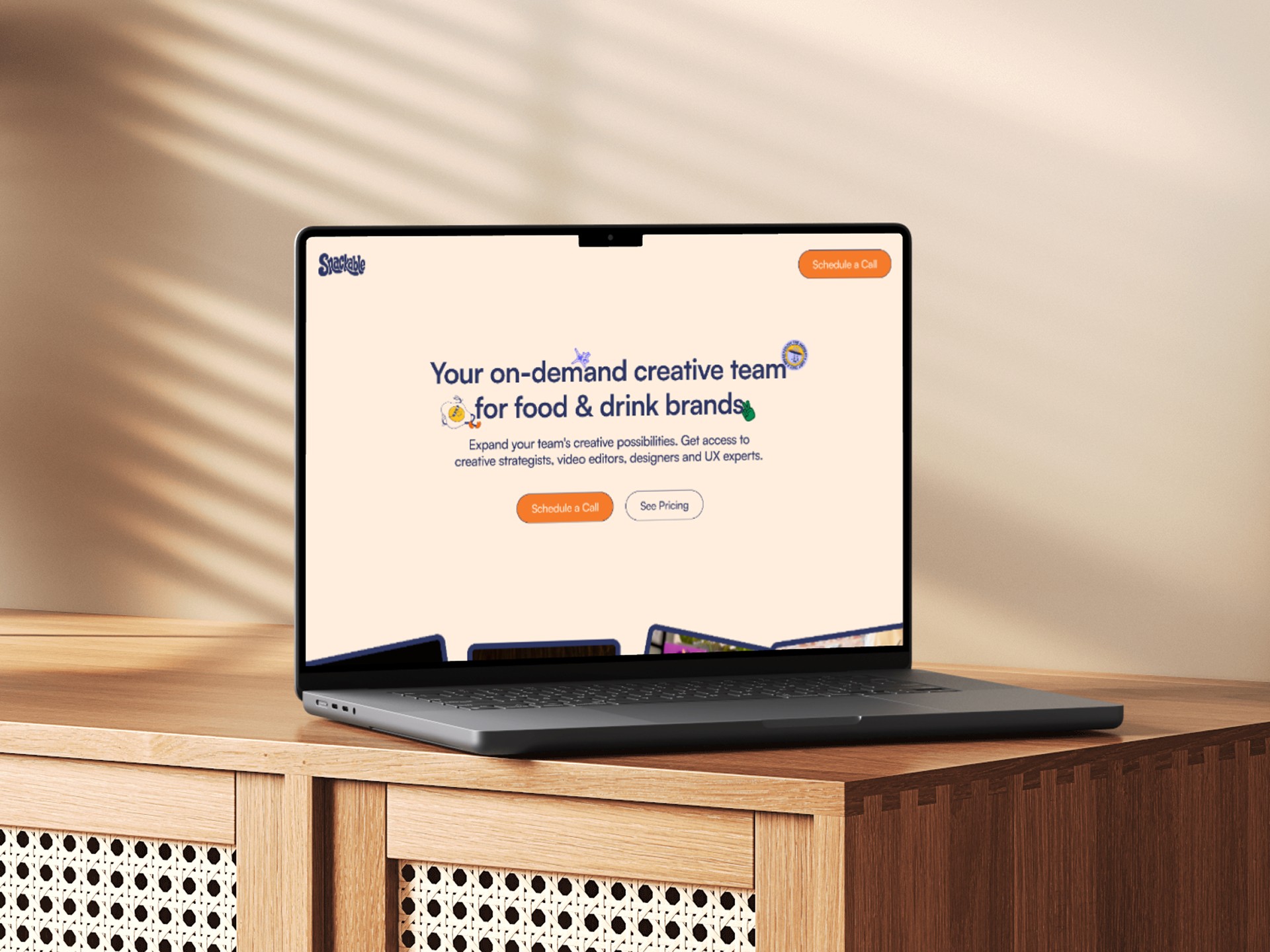 The final website delivers a modern, dynamic experience that reflects the energy of the Snackable brand while clearly explaining its offering. The structure prioritizes clarity and conversion, guiding visitors through the service, the partnership behind the brand, and the value of the creative-on-demand model.